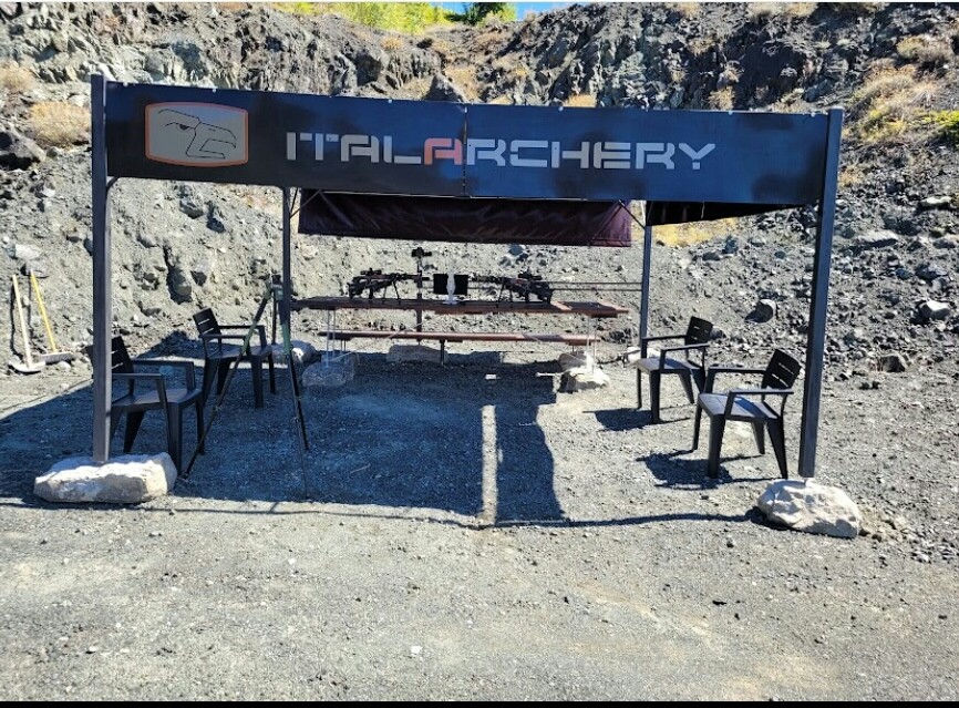 Buongiorno finalmente abbiamo completato il campo da tiro di ItalArchery è situato in provincia di Parma , precisamente a Corniana ( 562 msl) . Il campo è situato in una vecchia cava di roccia ormai dimessa ed offre la possibilità massima di tiro di ben 200 m utili , naturalmente tirando in assoluta sicurezza , visto che è letteralmente circondato da rocce alte tra i 60 e i 70 m , quindi anche nella peggiore delle ipotesi non cé alcun rischio , tra l'altro è un posto isolato , ma comunque servito da una strada quasi completamente asfaltata , tranne gli ultimi 300 m. Abbiamo costruito un gazebo fisso , completamente in ferro , con teli come copertura , dalle dimensioni di 4 m x 4m , inoltre è provvisto di tavolo con relativa panca per il tiro da seduti . Cé anche la possibilità durante le sessioni di tiro , di usufruire della telecamera con vista sul bersaglio e con un tablet appoggiato sul tavolo da usare come monitor per vedere dove impattano i dardi . Possiamo anche fare dei video usando una fotocamera Nikon P1000 di effettuare video dalla postazione di tiro e di zoomare fino alla visuale , si vedono chiaramente i fori , tutto naturalmente senza nessun cambio di immagine , come fanno molti altri costruttori , tutto questo per certificare ogni sessione di tiro . Per chi vorrà provare il long range vi terrò aggiornati su quando sarà possibile venire al campo .💀👍