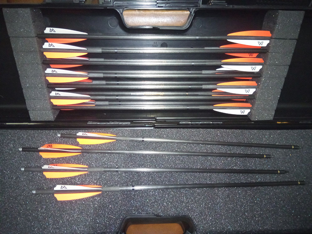 Non usare i dardi da 26" in fibra, potresti causare veramente altri disastri, io preferisco i dardi corti il più possibile in base al modello di balestra, appesantiti con punte da 150gr, tu se puoi usa massimo dardi da 20" come i dardi di fabbrica della tua balestra.