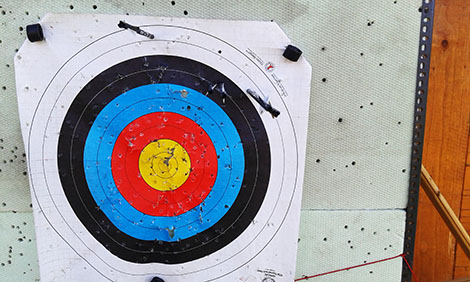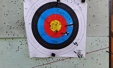 9) Cristian essendo alle prime armi come Balestriere ha deciso di tirare all'imbracciata a 25 m per prendere confidenza con la balestra, questa è la sua rosata