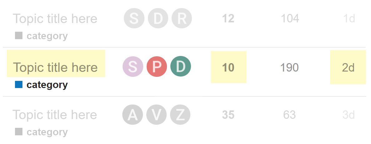 Qualsiasi argomento nel quale hai partecipato - creandolo, rispondendo o anche solo leggendo i messaggi al suo interno per un periodo più lungo - verrà automaticamente tracciato per te e mostrerà un indicatore se ci sono N nuovi messaggi: