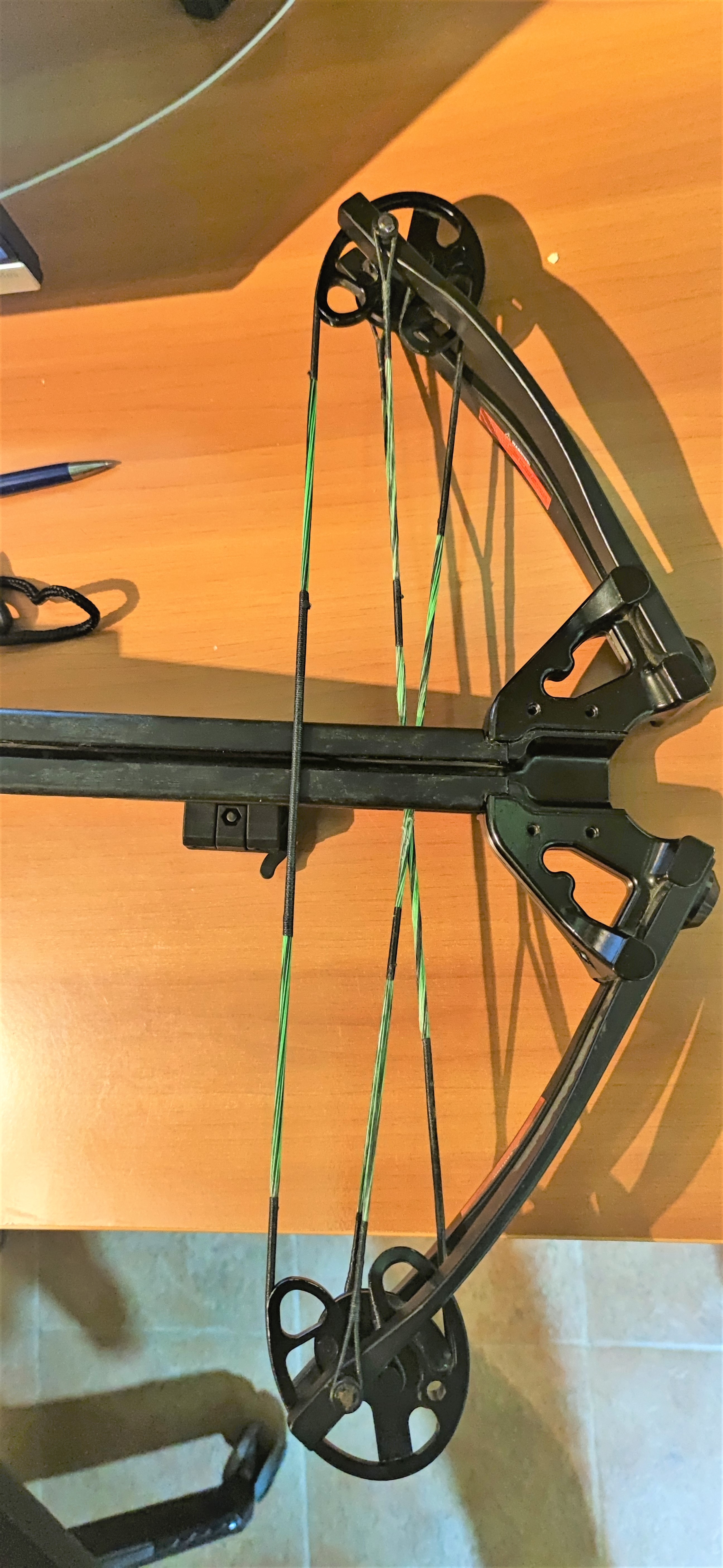 Salve, mi è stata regalata la balestra in oggetto alla quale mancava la corda "principale" quella che tira il tardo per intenderci. Dopo varie ricerca riesco ad individuare il ricambio ma non avendo mai avuto esperienze con la balestra e non avendo nelle vicinanze un'armeria che mi potesse aiutare ho montato da solo la corda con l'ausilio delle foto trovate in rete. Da qui mio dubbio! Non so se effettivamente ho montato le corde correttamente in quanto non ho mai visto la balestra funzionante. Ho provato a caricarla ma non ci riesco, anche perchè manca la staffa davanti dove si mette il piede (scusate l'ignoranza non so il nome dei pezzi). Chiedo se qualcuno può dare un'occhiata alle foto e dirmi se va bene in questo modo e se sapete dove posso trovare la staffa per il piede come ricambio. Grazie mille