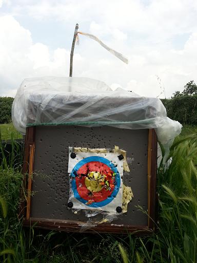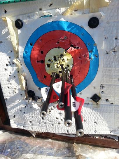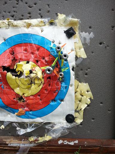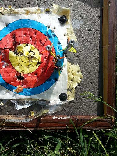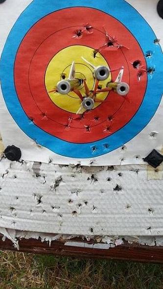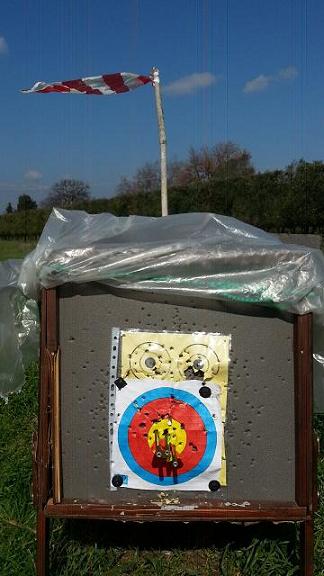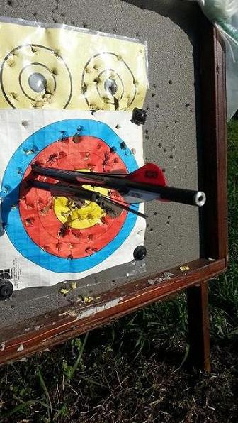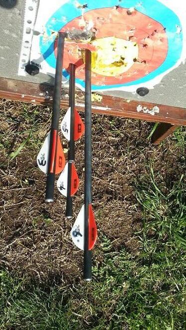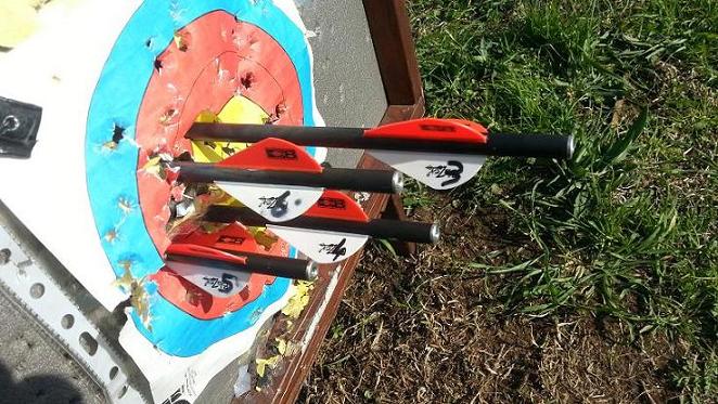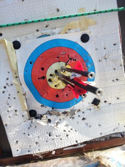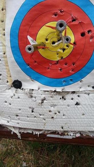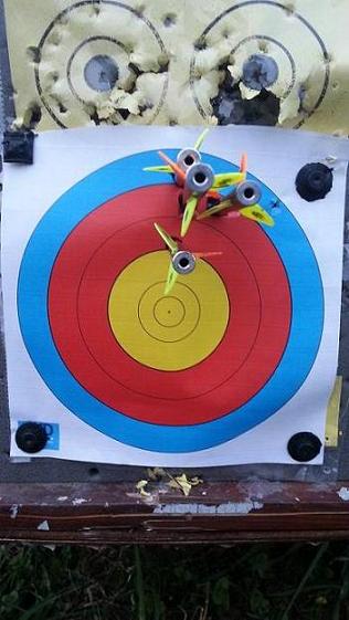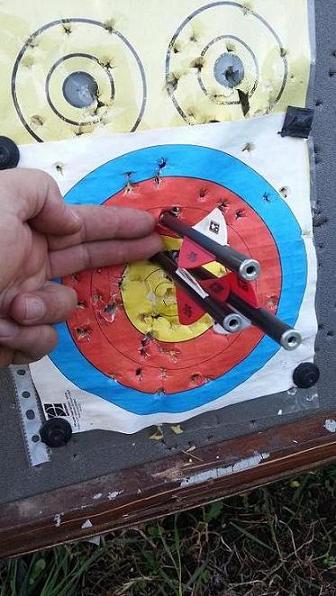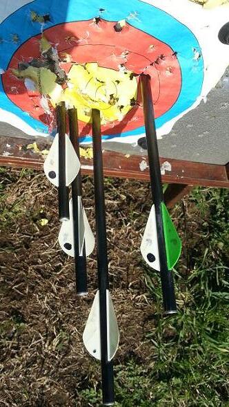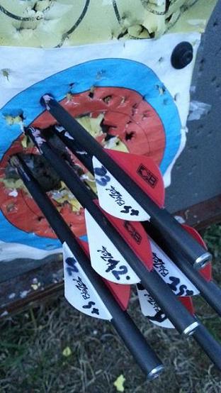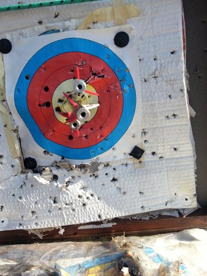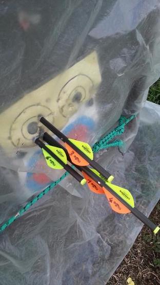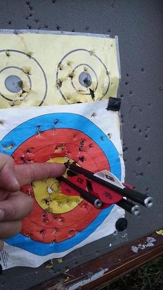 Durante queste prove a 90m mi sono prefissato come obbiettivo, di avere la maggior costanza di rosata possibile e ho cosi testato vari tipi di dardo (Quill e Diablo originali, FMJ, Black Eagle Spynal Tapp e Zombie Slayer) cambiando lunghezze (16,5”-18”- 19”- 20”), pesi ( da 375 a 488 grani) tipo di alette ed inclinazioni, codolini etc. raggiungendo un buon risultato anche con vento da 6-8 km/ora con i dardi Black Eagle Spaynal Tapp 20” da 440 grani.