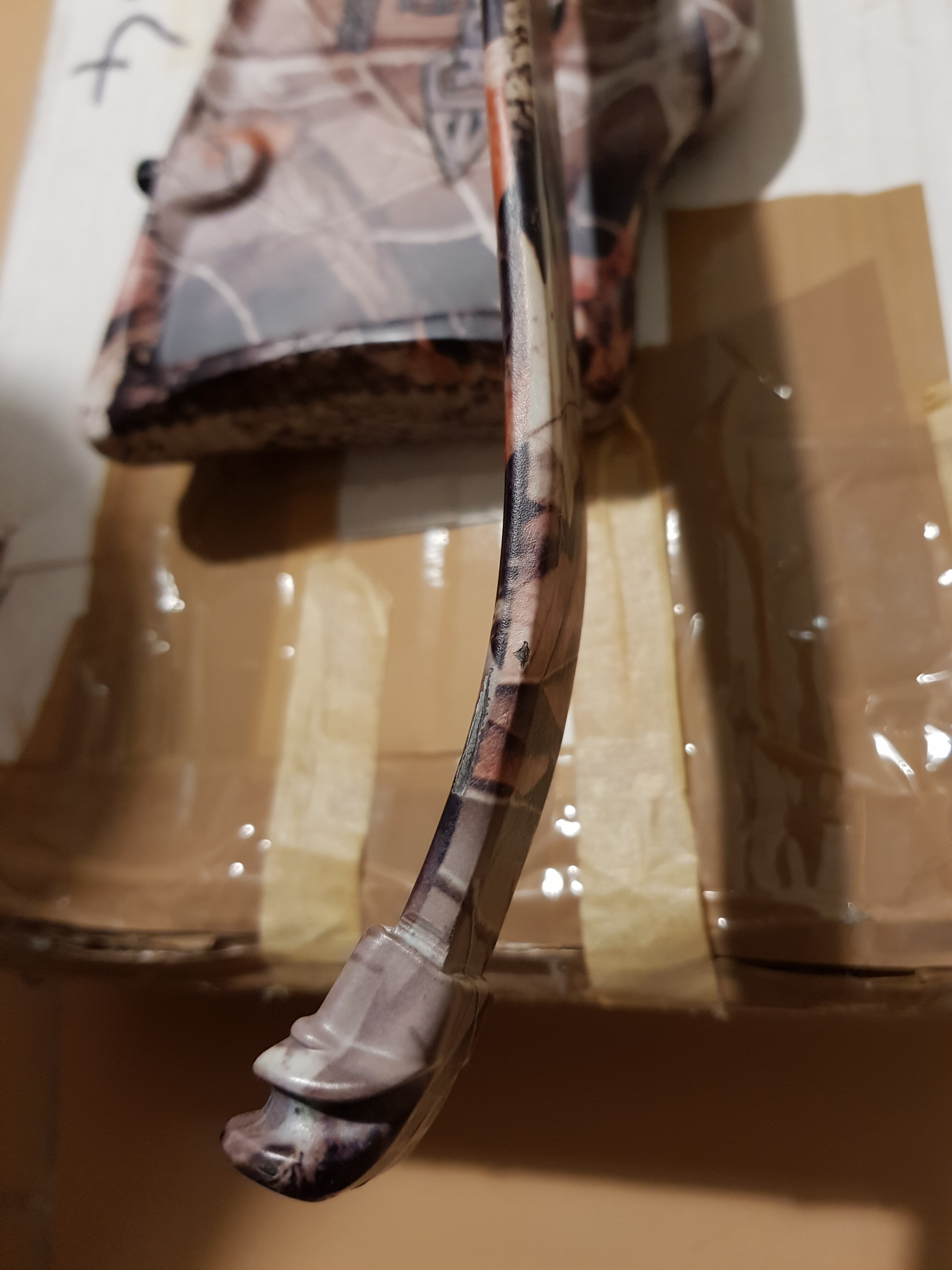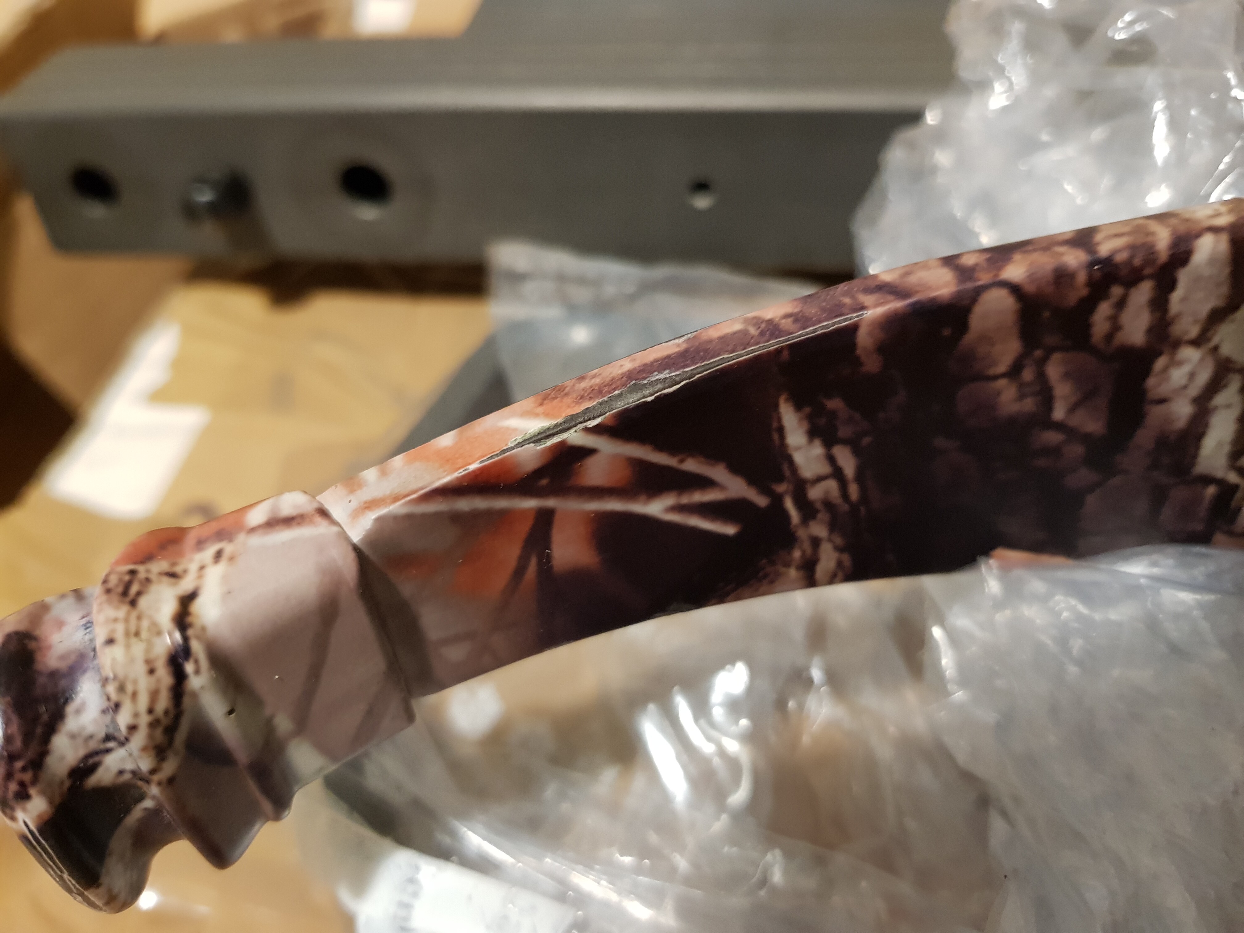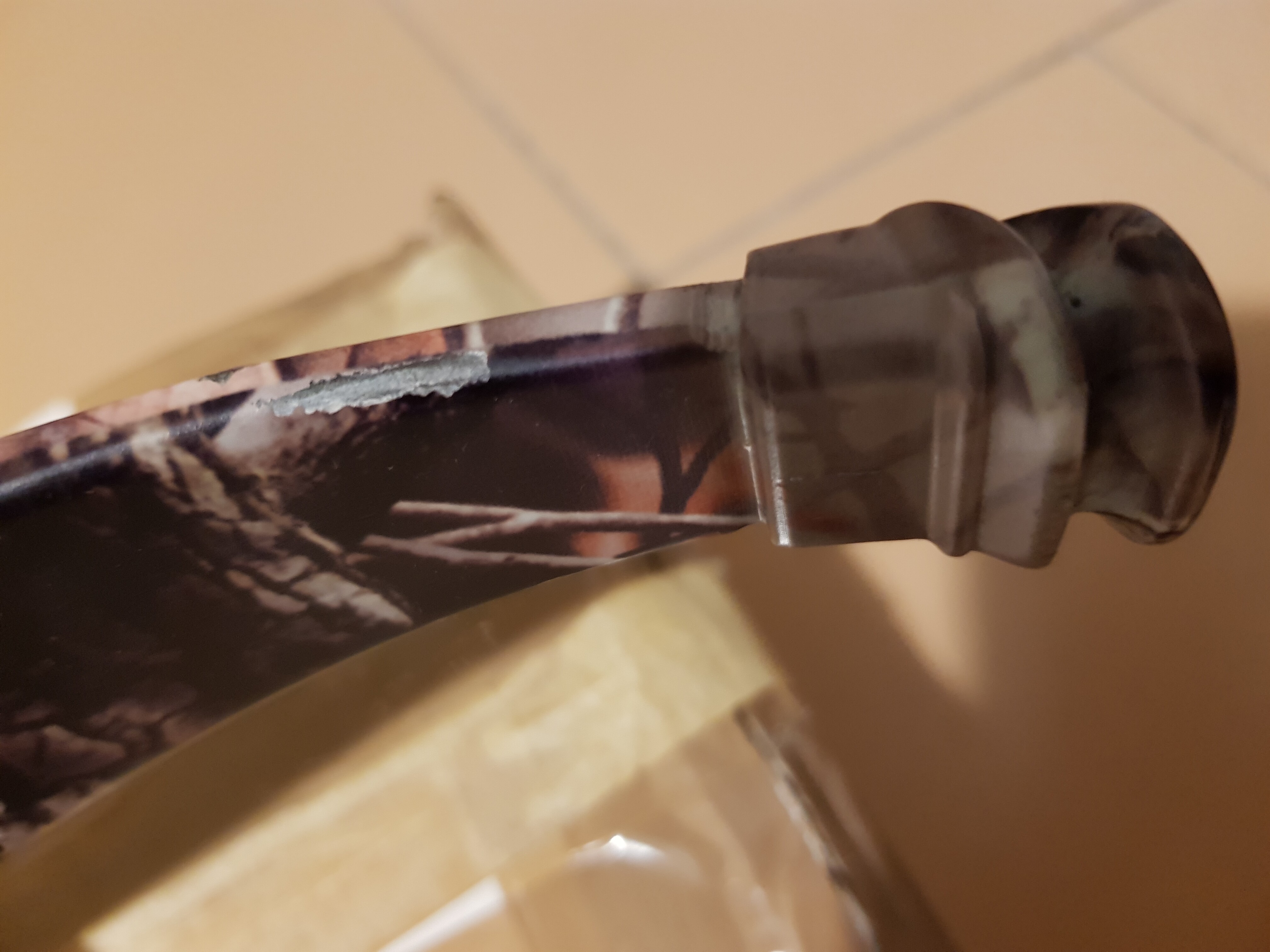 In apparenza si notano alcune screziature superficiali come in foto. Comunque non ho mai effettuato tiri a vuoto e ho da subito utilizzato uno smorzatore di vibrazioni fatto artigianalmente da un utente di un vecchio forum. Ho poi utilizzato frecce fatte personalmente da circa 620 grani. Bisognerebbe conoscere la durata nel tempo di colle/resine utilizzate.